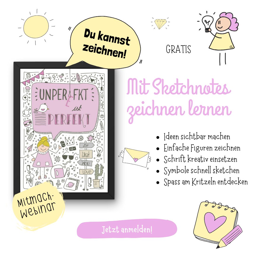 Mit meinem Webinar kannst du ganz unverbindlich Sketchnotes ausprobieren und die Vorteile für Dich entdecken: